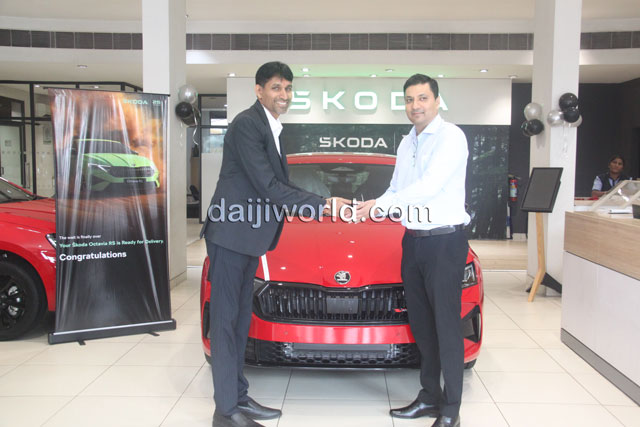 Mangaluru, Nov 28: The delivery ceremony of the all-new Škoda Octavia RS was held at the Škoda showroom in Chilimbi on Friday, November 28. The premium performance sedan was purchased by Dr Rajnish Sorake, managing partner of the Sorake Group.