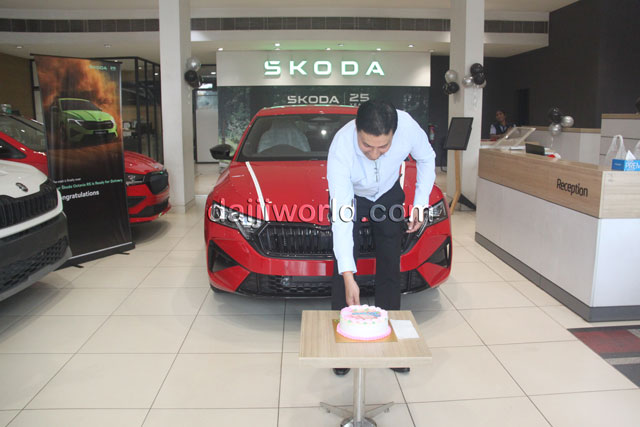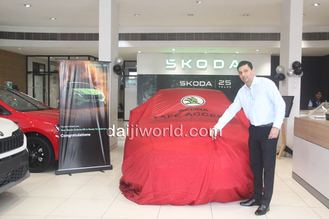 Kiran Suvarna, manager of the Škoda showroom, handed over the keys to the new owner in the presence of staff and well-wishers.