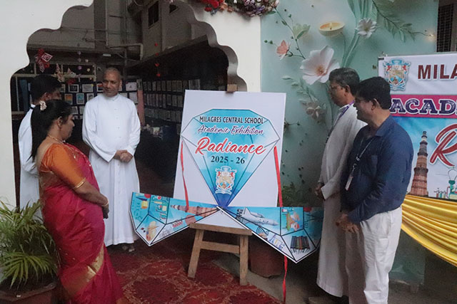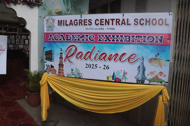 Mangaluru, Dec 3: Milagres Central School hosted its much-awaited exhibition RADIANCE 2025, showcasing the creativity and innovative spirit of its young learners. The programme began with a prayer by the school choir, followed by a warm welcome from Shaina Nazarth (grade VI). Aditya Biju (grade IXA) highlighted the significance of the exhibition in promoting experiential learning and critical thinking.