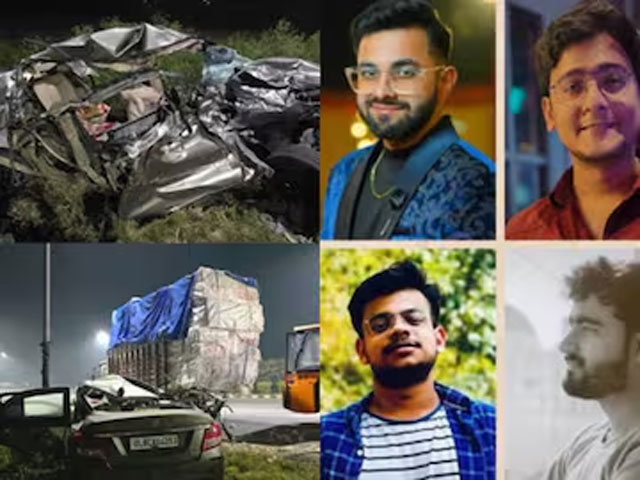 Amroha, Dec 4: A horrific accident on the Atrasi Service Road near Rajbpur Police Station claimed the lives of four MBBS students when a Swift Dzire car, traveling at high speed, collided with a foam-filled canter parked on the roadside. The impact caused the car to crumple completely and burst into flames, leaving the students trapped.