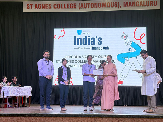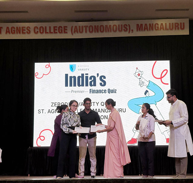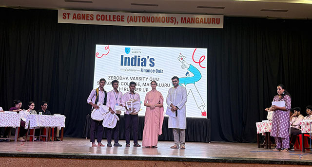Mangaluru, Dec 5: The Department of Commerce organized a finance quiz competition under the banner of “Zerodha Varsity – India’s Premier Finance Quiz” at St Agnes College (Autonomous), Mangaluru on November 28. The event received an overwhelming response, with 325 teams, each consisting of three students, registering and actively participating in the quiz.