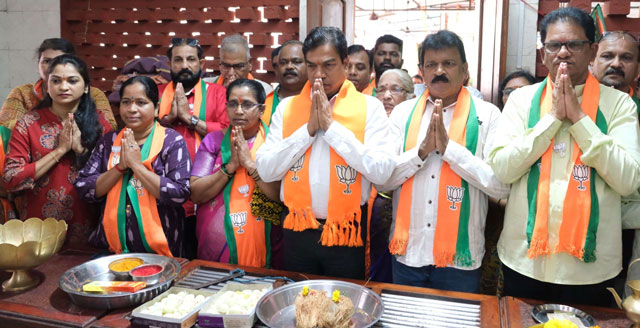 The leaders, along with ZP member Paresh Naik and several party workers, visited Shantinagar temple to seek blessings of Goddess Shantadurga before beginning the election campaign.