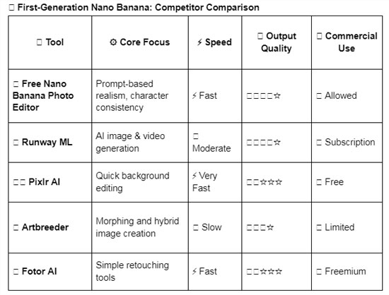 The first-generation Nano Banana stood out for its intuitive workflow—simple enough for beginners yet powerful enough for professionals needing precise composition and detail.