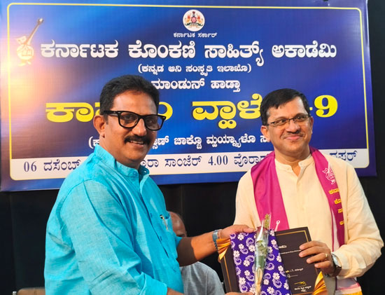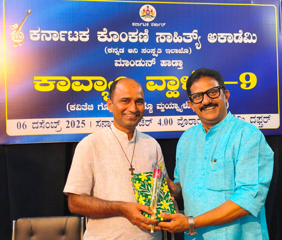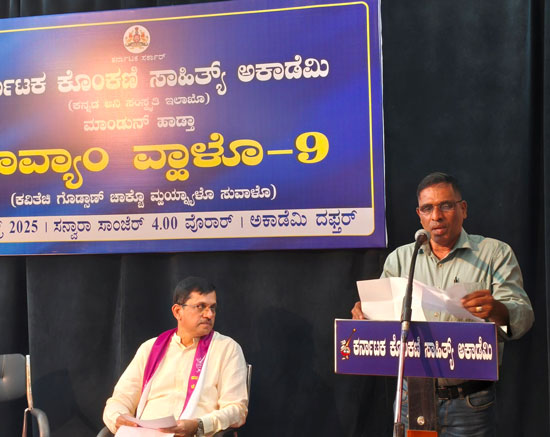 Mangaluru, Dec 8: The Karnataka Konkani Sahitya Academy organised the ‘Kaavyaam Vhaalo – 9’ poets’ meet at the Academy hall on December 6. The programme was presided over by academy president Joachim Stany Alvares. Delivering the introductory address, he said that the Academy has been implementing various projects since the beginning of the year, and the poets’ meet is one among them. He said the event provides a platform for poets and encourages new writers. “Today’s poets’ meet is dedicated to the memory of renowned poet the late Cha Pra D’Costa on his 33rd death anniversary. May this gathering inspire both youth and elders to compose more poetry,” he said while welcoming the gathering.