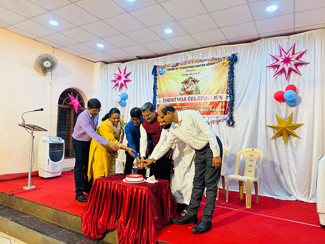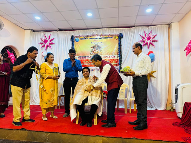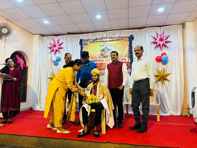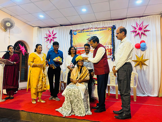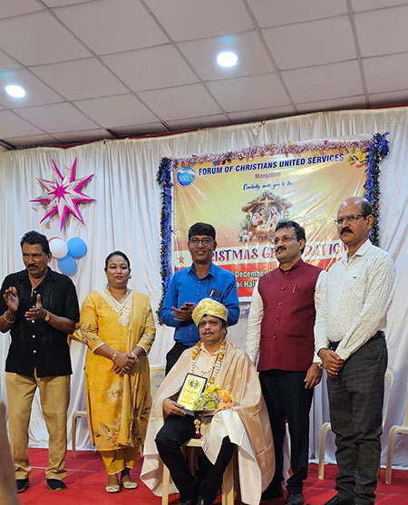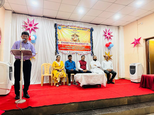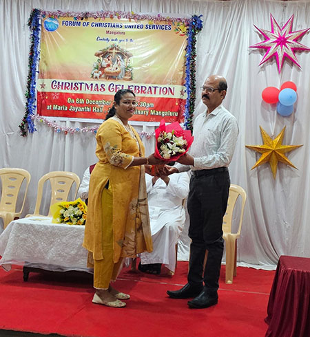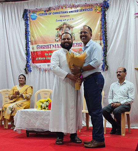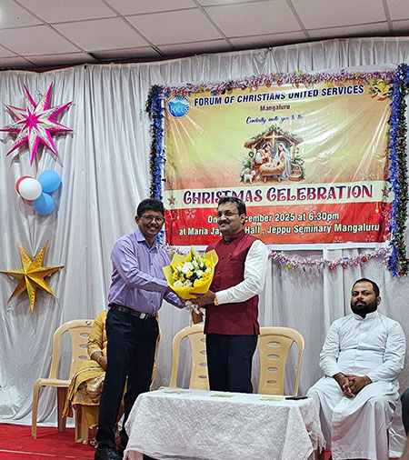 Mangaluru, Dec 9: The Forum of Christian United Services, (FOCUS) Mangalore, celebrated Christmas 2025 on December 6, at Maria Jayanthi Hall, Jeppu Seminary, Mangalore. The event was blessed by Fr Roshan D'Cunha, director of YCS YSM diocese of Mangalore, and presided over by John B Monteiro, former president of Rachana Catholic Chamber of Commerce and Industry, Mangaluru. The chief guest of the day was Joe Pradeep D'Souza, senior assistant director of horticulture, Bantwal taluk.