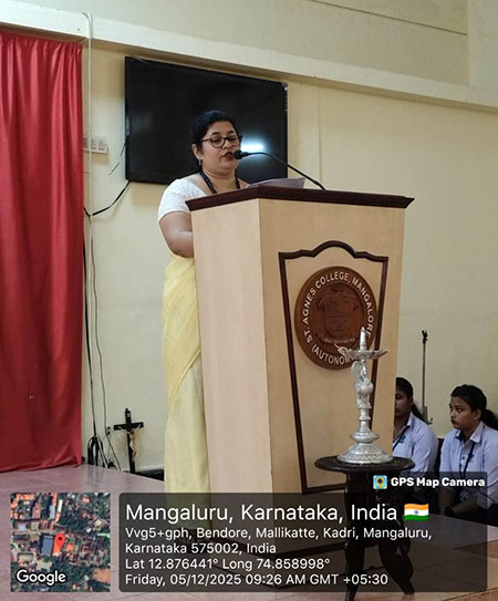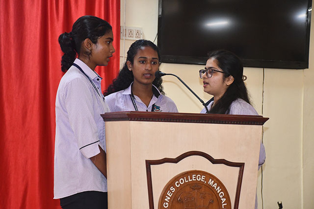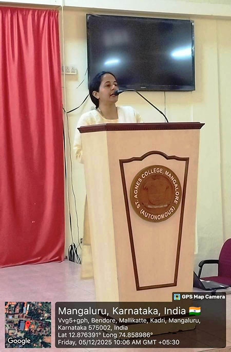 Guest of honour Arpana R Bhat, alumna and lead–institution partnerships, MFK Foundation, Bengaluru, briefed students on the various certification courses available, explaining how they develop confidence, communication, leadership, and professional readiness. She expressed her happiness returning to her alma mater, urging students to build strong roots with the institution and to return to St Agnes someday, giving back to future learners as she has done