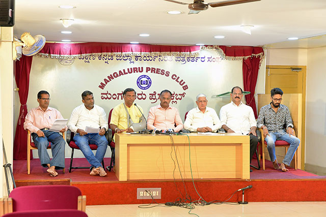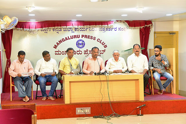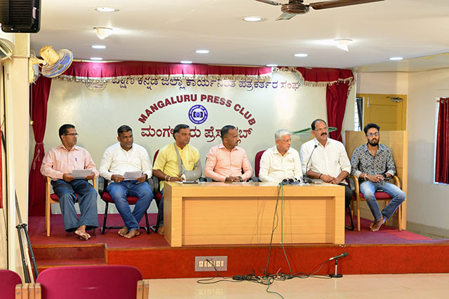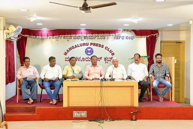Roy Castelino, president of Mother Teresa Vichara Vedike, Sunil Kumar Bajal, secretary, Santosh D’Souza, president of Catholic Sabha Mangalore Pradesh (R), Stany Lobo, programme coordinator, Stanley Bantwal from the Publicity Committee, Rehman Khan Kunjathbail, Samarth Bhatt, and Dolphy D’Souza treasurer were present at the press conference.