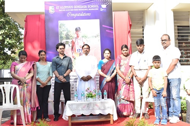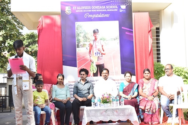 Mangaluru, Dec 9: St Aloysius Gonzaga School held a special felicitation programme on December 9 to honour Master Yuvaraj D Kunder of Class VIII for his remarkable success at the SGFI National-Level Athletics Championship.