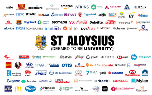 St Aloysius (Deemed to be University) offers a strong placement ecosystem driven by an active Training and Placement Cell that builds industry partnerships and prepares students for diverse career opportunities. Each year, top multinational and Indian companies—including Accenture, Amazon, Infosys, Deloitte, EY, KPMG, IBM, Capgemini, Toyota, Hyundai, HSBC, Pfizer, Wipro, Tech Mahindra, and many others—recruit students across IT, finance, consulting, manufacturing, healthcare, biotech, media, and more. Students receive comprehensive training in soft skills, resume building, interviews, group discussions, and domain-specific competencies, along with internship opportunities that often lead to job offers. With its focus on academic excellence, professionalism, and holistic development, the University produces confident, industry-ready graduates who are highly valued by employers.