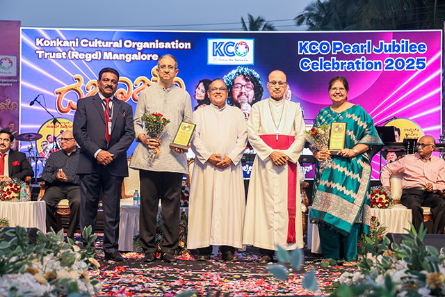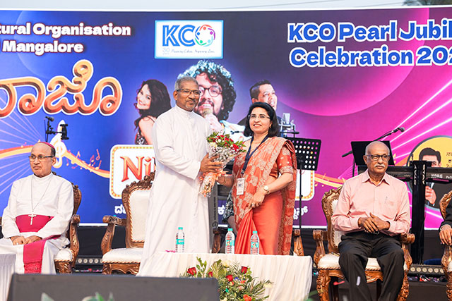 The evening began with a welcome by well-known MC Leslie Rego and a majestic ceremonial procession, featuring the bishop of Udupi, Dr Gerald Isaac Lobo, KCO founder and current president, Leo Rodrigues and other distinguished guests, escorted by the soul-stirring melodies of a traditional brass band. The programme was initiated by Fr Clifford Fernandes, parish priest of Cordel parish, with a heartfelt invocation, followed by a captivating welcome dance by Remona Pereira and her team that set the tone for a night of music, dance, and celebration.