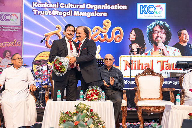 The highlight of the evening was the electrifying performance by Nihal Tauro, Indian Idol 12 finalist, who mesmerized the audience with his soulful voice and energetic stage presence. Backed by a talented music troupe from Mumbai, Tauro delivered a performance that had the audience on their feet, singing along to hits like ‘Gombe Heluthaithe’ (Kannada), ‘Mogh Tujo Kitlo Ashelo’ (Konkani) and ‘Mokeda Singari.(Tulu). His infectious energy was palpable as he danced among the crowd, encouraging everyone to join in the fun.