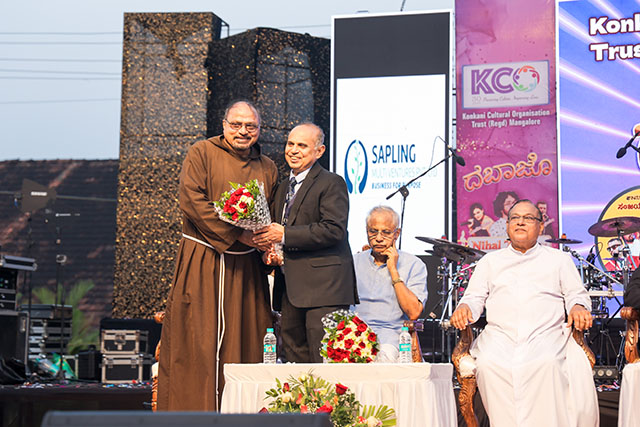 Fr Clifford Fernandes, Fr Cyprian D’Souza, Fr Ronald Cutinha, guest of honour J R Lobo, former MLA, SVP Central Council president Joe Coelho, media heads, Remona Pereira, Stany Alvares - KKSA president were felicitated during the event, by the dignitaries on the dais and the artistes and MC Leslie Rego were felicitated by KCO president.