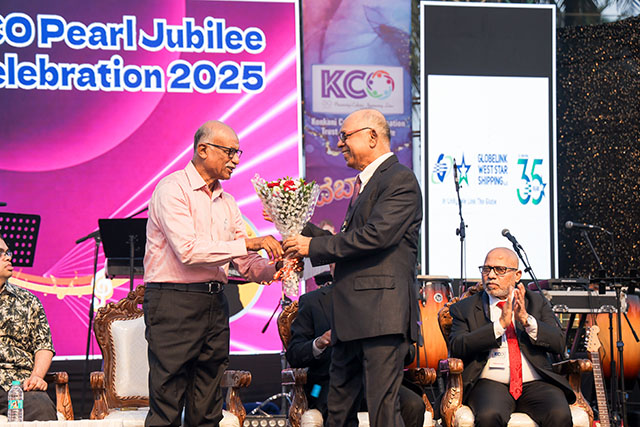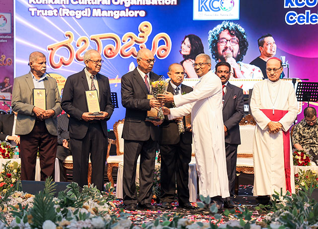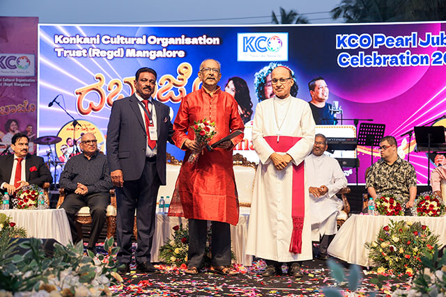 Bishop Dr Gerald Isaac Lobo released the KCO Pearl Jubilee souvenir and praised KCO's dedication to its mission, stating, "KCO has wiped the tears of many marginalized families." The event also honoured former presidents, secretaries, and treasurers of KCO for their contributions, and recognized the efforts of Franklin D'Cunha, convenor of Pearl Jubilee Committee and Valerian Dalmaida, chief editor of Pearl Jubilee souvenir and founder president and the current president, Leo Rodrigues recognized for his service and sponsorship for the past 30 years, with shawl, flowers and memento.