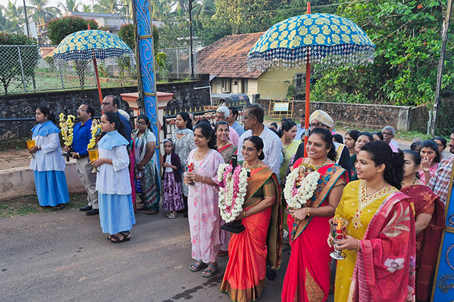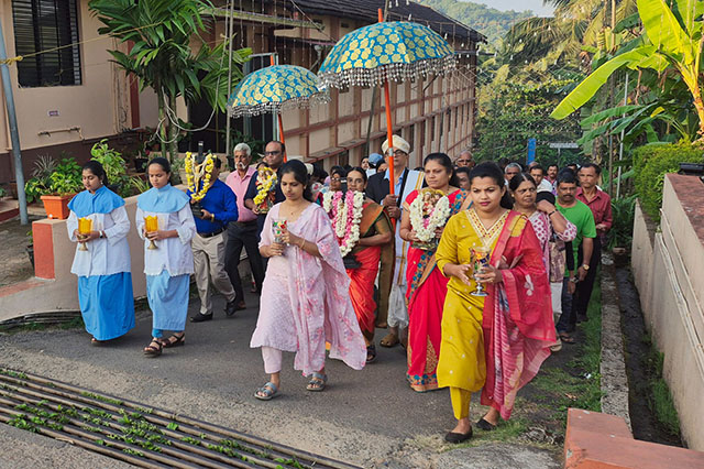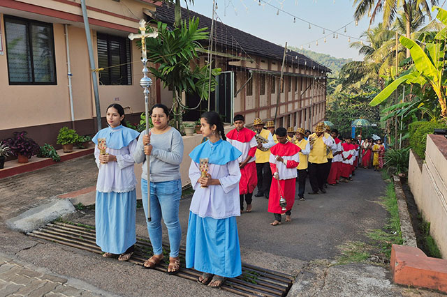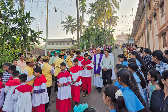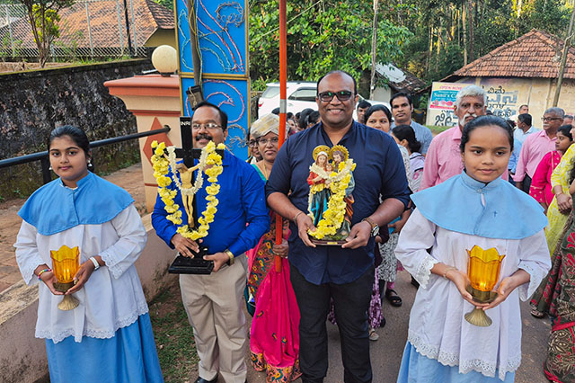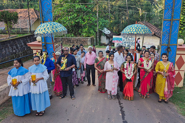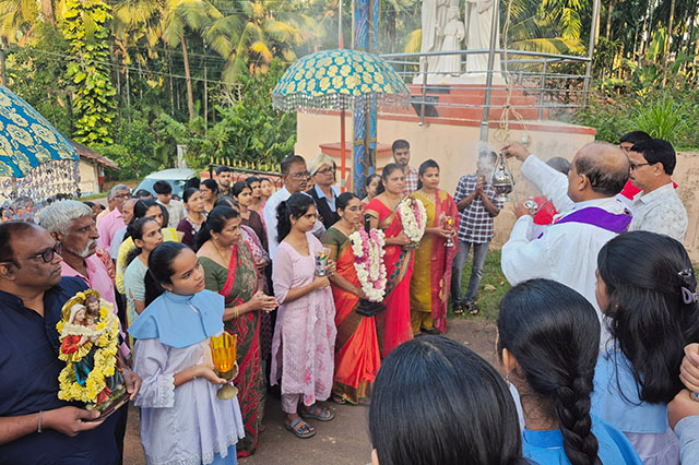 The sacred symbols were prayerfully brought in procession from Mermajal I Holy Family Ward and Arkula II Infant Mary Ward, accompanied by devoted parishioners who participated with reverence and faith. Upon their arrival at the church premises, the Holy Family Statue and Cross were warmly received by Fr William Menezes, parish priest, who blessed them along with the gathered faithful.