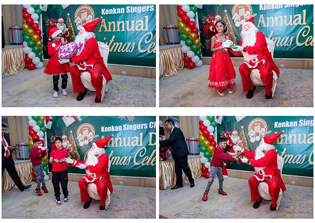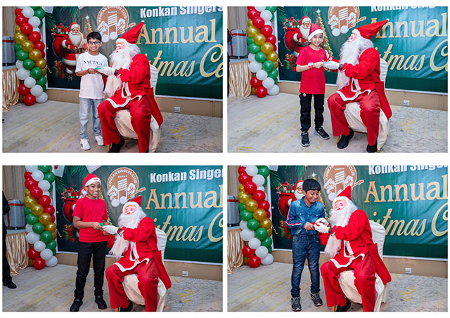 The programme began on a melodious note with beautiful Christmas carol singing by the club’s talented children. The choir was meticulously trained and guided by Reema D’Souza and Shanthi Noronha, whose efforts were highly appreciated by the audience. The children then joyfully welcomed the Man of the Season – Santa Claus, who spread cheer by distributing gifts and chocolates, bringing smiles and excitement to the little ones.