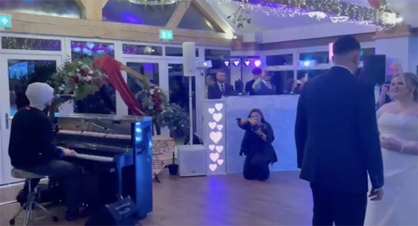 The unexpected moment unfolded at a wedding in Staffordshire, where family and friends had gathered to celebrate the couple’s big day. What was meant to be a simple first dance became extraordinary when Martin quietly walked in and sat at the piano, performing his song All My Love as the bride and groom shared their special moment.