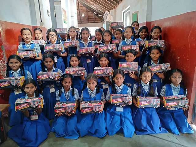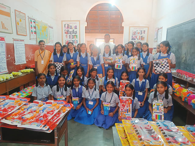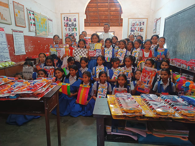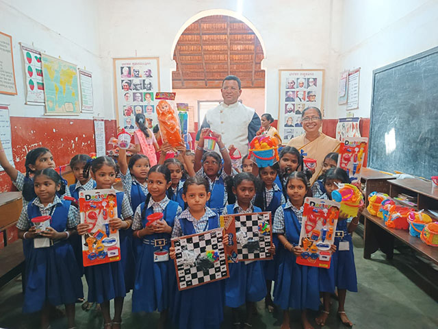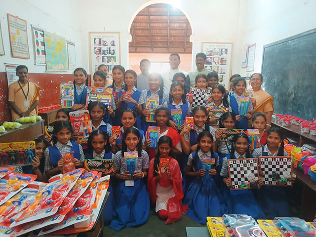 Finally, shoes, socks, and toys were distributed to all the children. The joy and excitement of the children who received the toys created a festive atmosphere in the school, spreading waves of happiness all around.