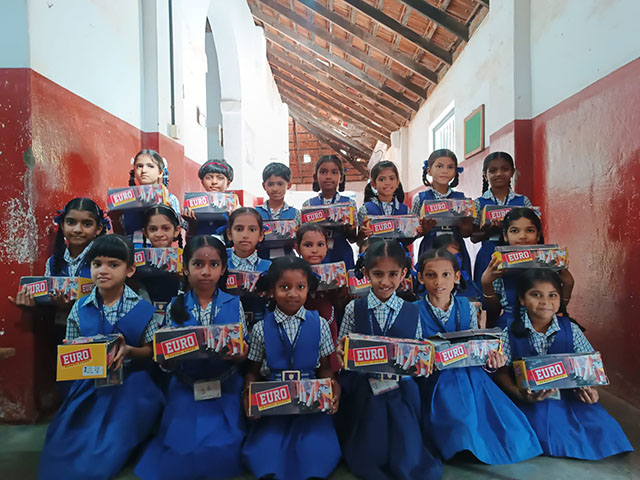The programme began with a prayer song. The students warmly welcomed everyone with a welcome dance. The in-charge headmistress, Delsy D’Souza, extended a cordial welcome to all. The event was inaugurated by lighting the lamp. Naveen Pereira, Surathkal, chief of Poetica, explained the objective of the program in his introductory address. The dignitaries on the dais symbolically distributed shoes and socks to a few students. As a mark of honour and remembrance, headmistress Delsy D’Souza presented rose saplings to all the guests.