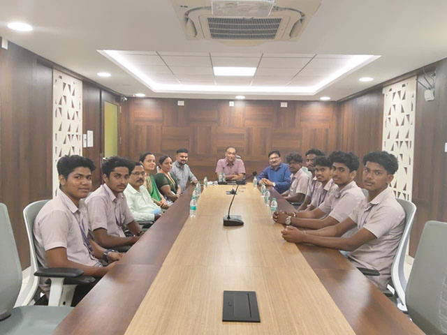 In all around 37 students participated in this visit over a period of 4 days. The college thanked CA Anantesh Prabhu, MD of Aruna Industries and Sukumar, manager of the firm for showing the students around the production unit. Clear cut explanation about the types of products manufactured, packaged, marketing and logistics part of the same was given. Every batch had a special interaction with CA Anantesh Prabhu in the conference room for additional inputs about his business and fresh ideas that the firm wants to introduce in the days to come. Overall, it was a resourceful experience for all the students which will help them as they plan their career in the world of logistics.