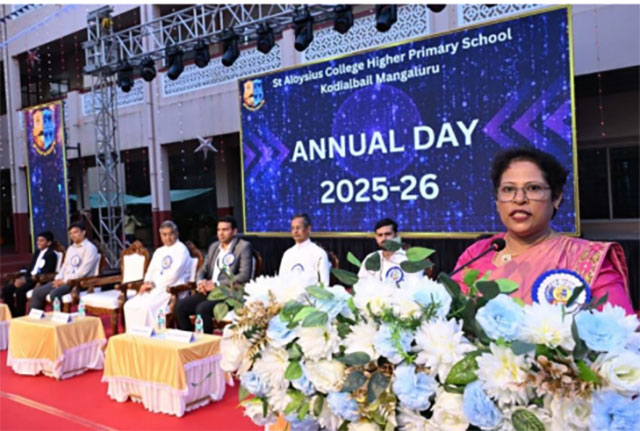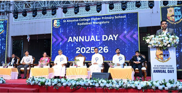 Mangaluru, Dec 19: St Aloysius College Higher Primary School celebrated its much-anticipated Annual Day on December 17 with great enthusiasm, colour and grandeur. The celebration began with a vibrant procession as the dignitaries were escorted to the stage by the school band setting a festive tone for the evening. The warm and cheerful welcome extended by the students through a traditional aarthi added charm and liveliness to the occasion.