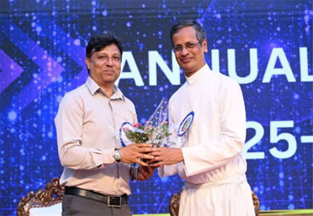 In his presidential address, Fr Melwin Pinto SJ spoke eloquently about the importance of global citizenship in Jesuit education. He encouraged students not merely to seek jobs but to become job creators, emphasizing that marks are only indicators of effort and do not define a child’s true potential.