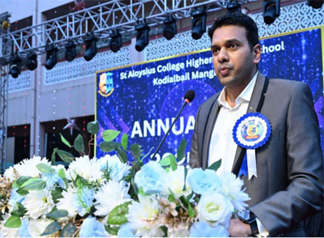 In his inspiring address, the chief guest, Abhinav Bhansal, fondly reminisced about his student days at St Aloysius, describing them as pivotal in shaping his life. He emphasized that success is not achieved overnight and that there are no shortcuts to achievement. He highlighted the importance of discipline, perseverance and consistent effort. Encouraging students to pursue any field be it science, commerce, arts, sports, or business with focus and responsibility, he urged them to respect their teachers and parents, manage time wisely, and continue learning beyond textbooks. Concluding his speech, he expressed pride in being an alumnus of the institution and conveyed his best wishes to the students.