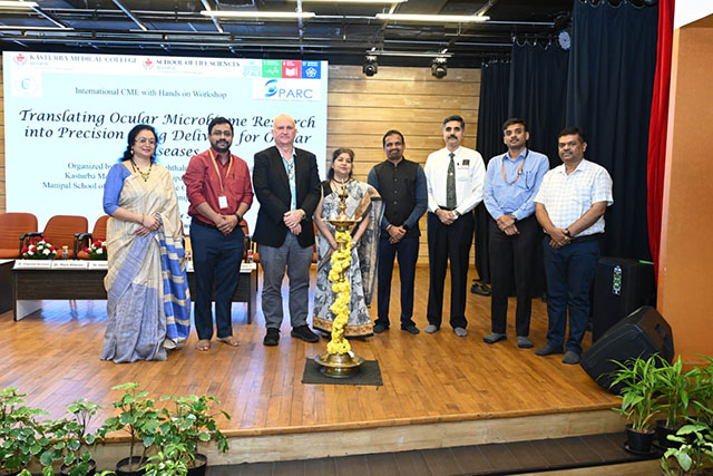 Udupi, Dec 19: Kasturba Medical College (KMC), Manipal, marked an important milestone in international academic collaboration with a SPARC-supported Continuing Medical Education (CME) program and Hands-on Workshop, along with the release of a research monograph, organized by the Departments of Ophthalmology and Microbiology, in collaboration with the Manipal School of Life Sciences (MSLS) and the Centre for Ocular Nanomedicine, MAHE, Manipal.