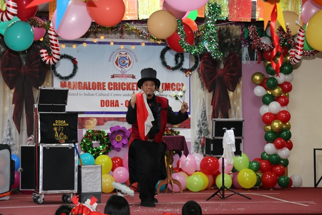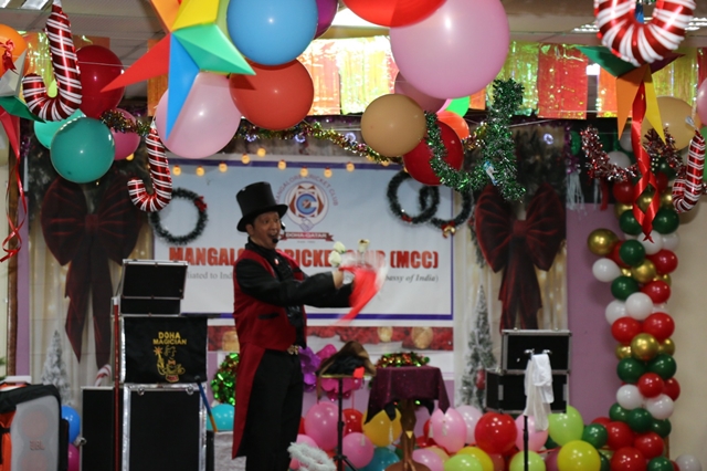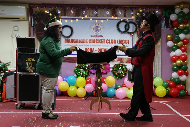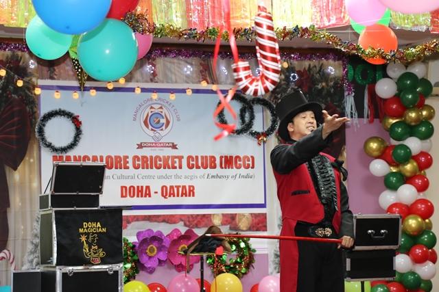 One of the most awaited moments of the evening was the exciting entry of Santa Claus, bringing immense happiness and excitement among the children. The fun continued with an energetic Zumba session with Santa, led by joint cultural secretary Sean Fernandes, creating a lively and interactive atmosphere. Following the Zumba session, the much-awaited part of the evening was the magic show by Rayn Tan – Doha Magicians, which thrilled the children and captivated the audience with exciting and entertaining performances.