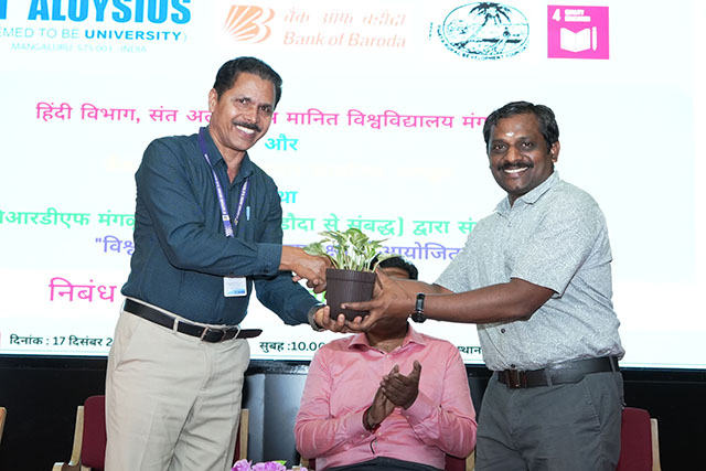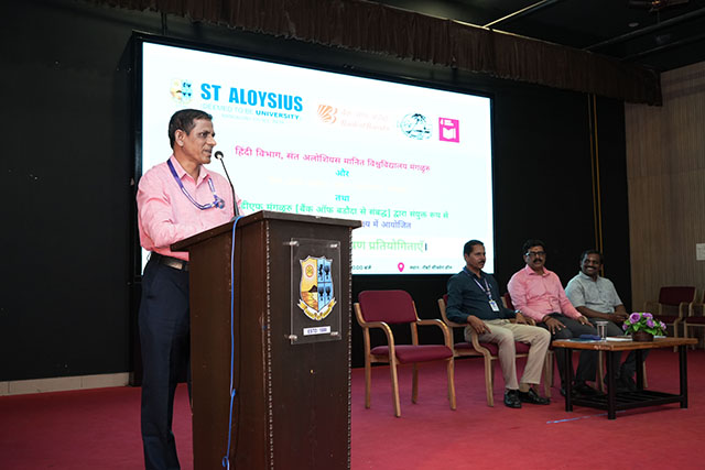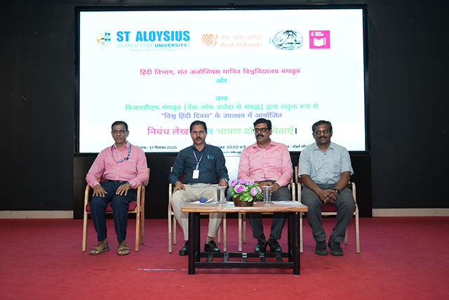 Mangaluru, Dec 20: Under the joint auspices of St Aloysius (Deemed University), and Bank of Baroda, Hindi essay writing and speech competitions were organized on December 17. These competitions were held at the Robert Sequeira Auditorium in celebration of World Hindi Day 2026, to be observed on January 10, 2026.
