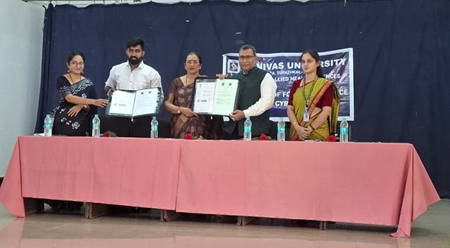 A key highlight of the inaugural session was the signing of a Memorandum of Understanding (MoU) between the Department of Forensic Science, Srinivas Institute of Allied Health Sciences, and the Sherlock Institute of Forensic Science.