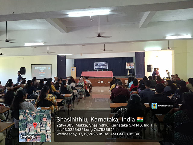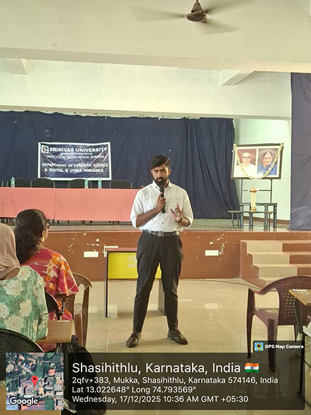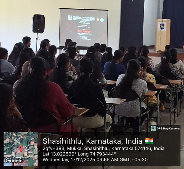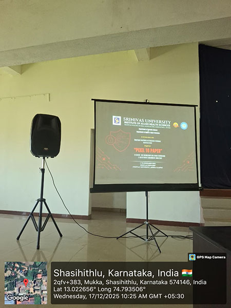 Mangaluru, Dec 20: The Department of Forensic Science and the Department of Digital and Cyber Forensic Science, Srinivas Institute of Allied Health Sciences, Srinivas University, organised a one-day hands-on workshop titled “Pixel to Paper” on cyber forensics and questioned document analysis on December 17 at the Medical Block Auditorium, Mukka, Surathkal. The workshop witnessed active participation with 121 registered participants.