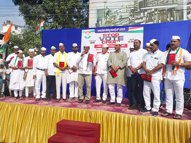 Title: Udupi district Congress forms human chain as part of 'Vote Chori' campaign