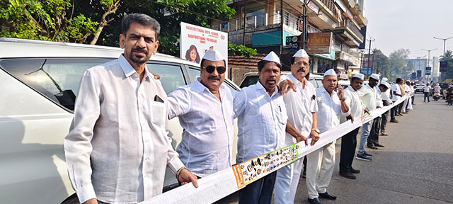 Thousands of people participated in the human chain formed from the City Bus Stand to Manipal, expressing solidarity with the campaign.
