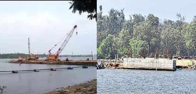 As part of the bridge connecting the two shores, several pillars have already been constructed. On one side of the river, water has been temporarily blocked to facilitate pillar construction. Subsequently, work on the connecting road towards Tannirbhavi is also underway.