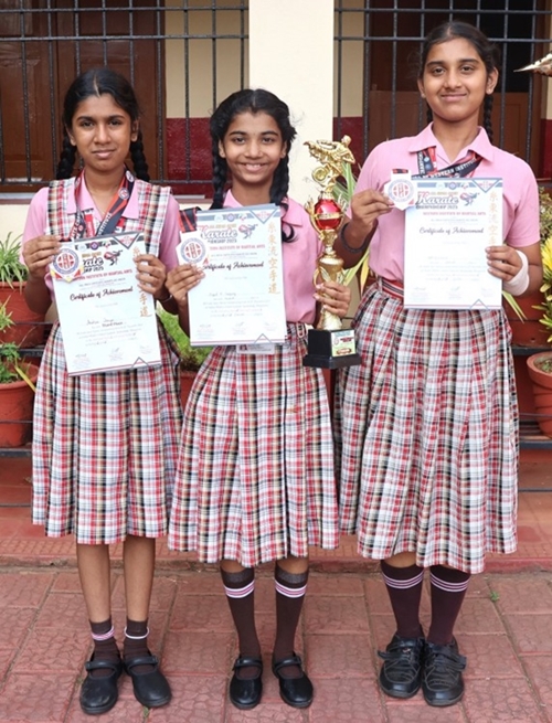 The competitors in the 13–14 years category delivered an exceptional performance, bringing significant laurels to the institution. Payal R Poojary (8D) secured II place in Kata and II place in Kumite, Aditi Suvarna (8B) won II place in Kumite, and Fathima Zoha (8D) achieved I place in Kumite and II place in Kata. Nilani Ullal (9B) secured III place in Kumite, while Ridima Ranjith (9C) clinched I place in Kata and I place in Kumite. Dhanvi V K (9D) earned II place in Kumite, Ahana Adiga (9A) won I place in Kumite and II place in Kata, Saanvi M Kulal (9D) secured II place in Kumite, and Thanvi Kishore (9C) emerged victorious with I place in Kata and I place in Kumite.
