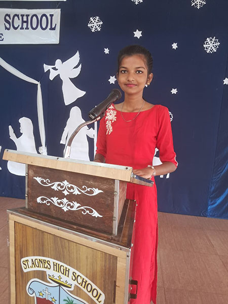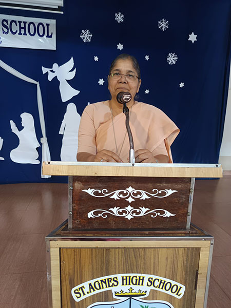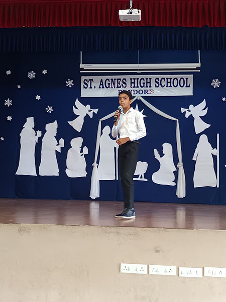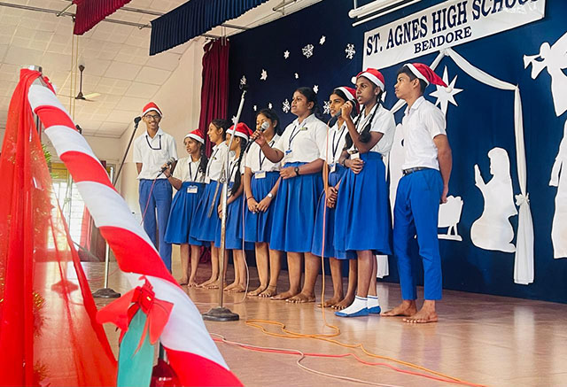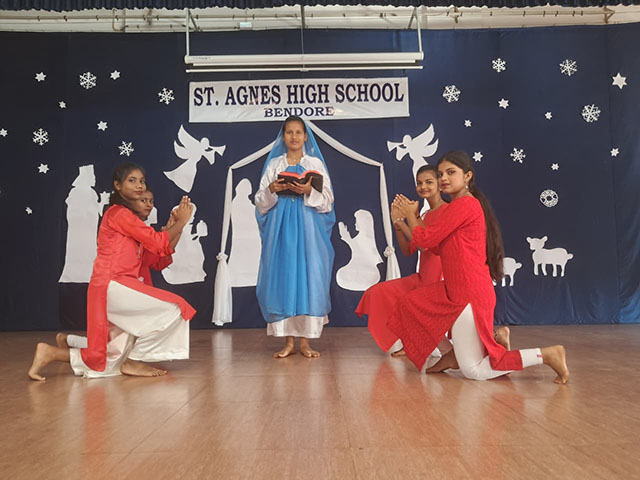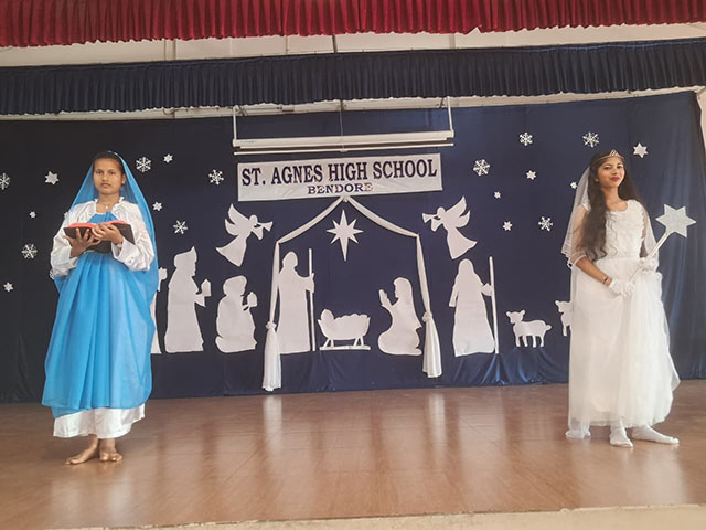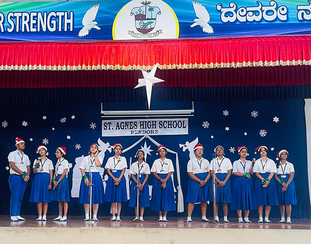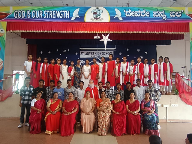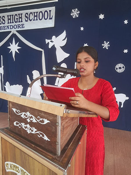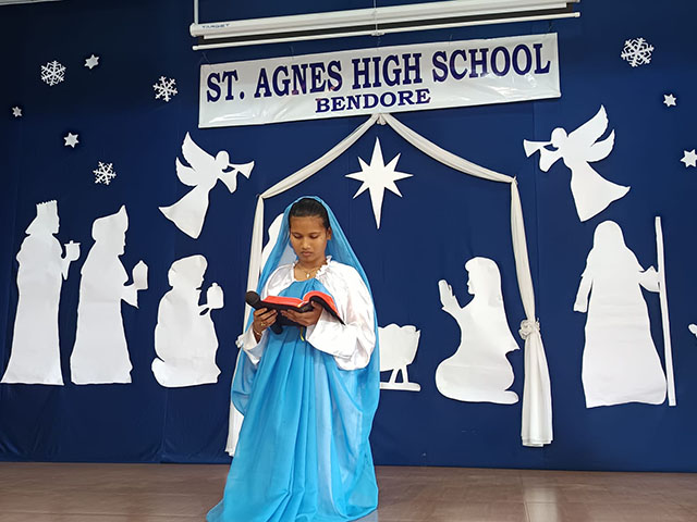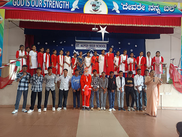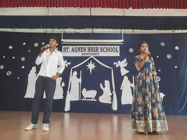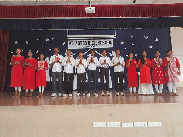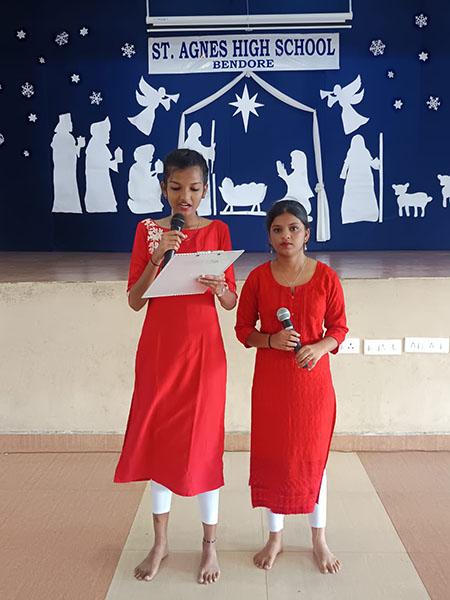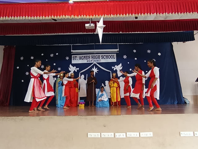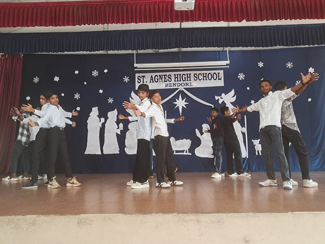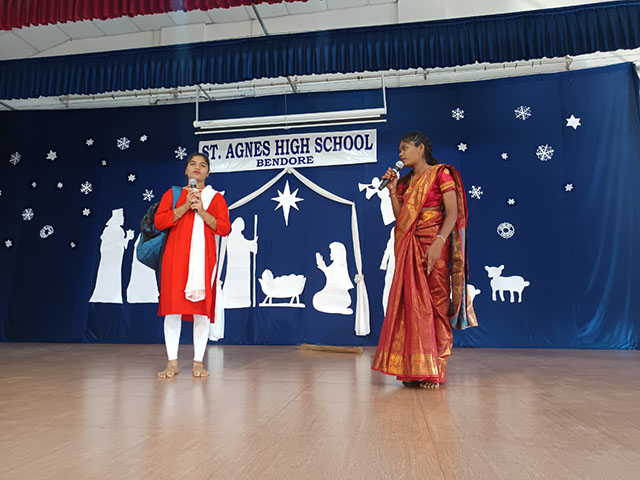 Mangaluru, Dec 24: The Christmas celebration was joyfully conducted in at St Agnes High School, Bendore by class 9A. The programme began with a solemn prayer, seeking blessings of new born Jesus, for peace, love, and harmony. Graceful welcome dance was performed to begin the programme.