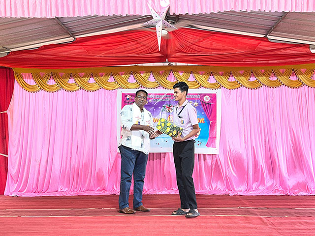 The programme began with a prayer song led by EM 1st year students, invoking God’s blessings and setting a spiritual and peaceful tone for the celebration. This was followed by a warm welcome address by the principal, Roshan D’Souza.
