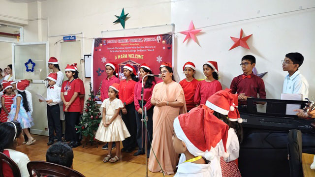 As part of the celebration, kindergarten children, along with a few other students and staff members, visited the Father Muller Paediatric Ward to spread joy and cheer among the young patients. The MCCS children presented a touching programme that beautifully conveyed the true message of Christmas of love, care, kindness, and hope. Their cheerful greetings and warm smiles brought comfort and happiness to the patients and caregivers alike. Gifts were distributed to the children, and refreshments were served to everyone present.