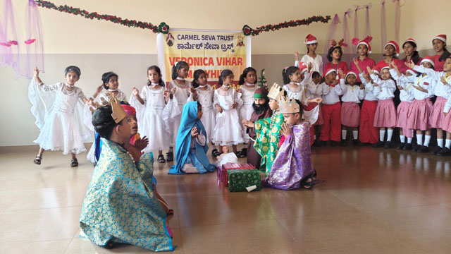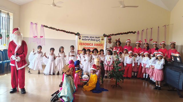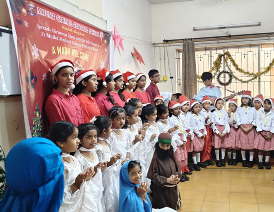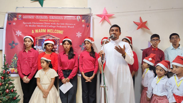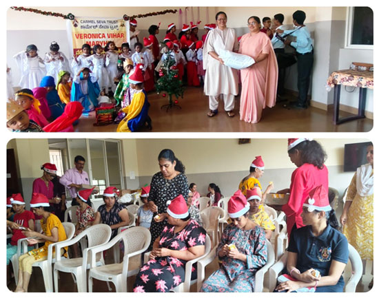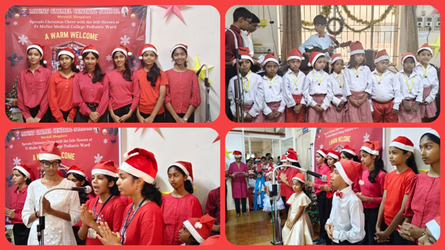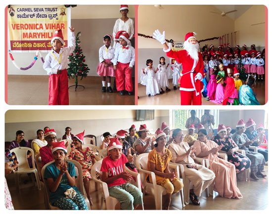 Mangaluru, Dec 24: Mount Carmel Central School (MCCS) organised a meaningful outdoor Christmas celebration with great love and enthusiasm at the Father Muller Paediatric Ward and Veronica Vihar on December 22, and at St Agnes Special School on December 23. These programmes were thoughtfully planned by the school and generously supported by well-wishers through contributions in both cash and kind.