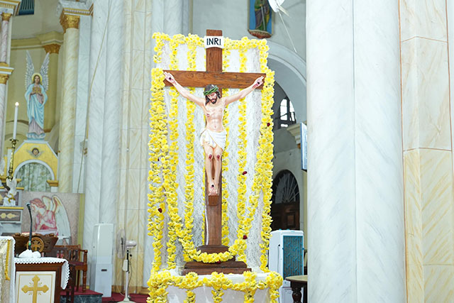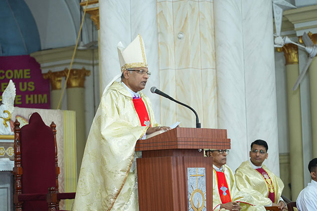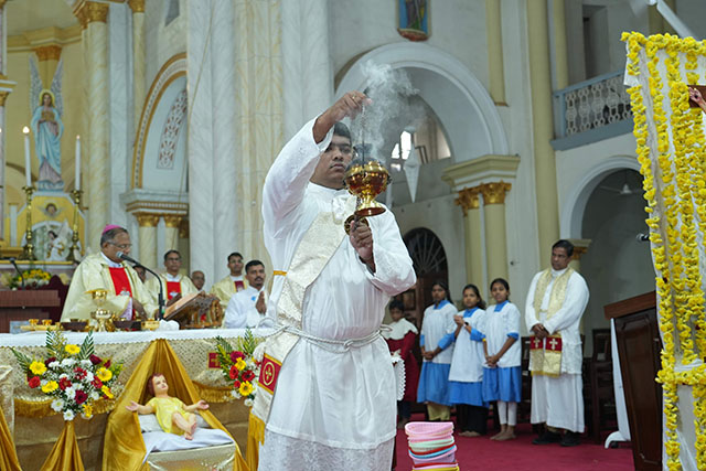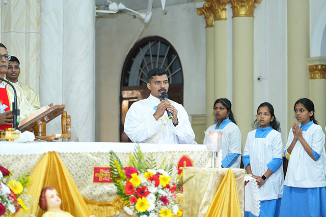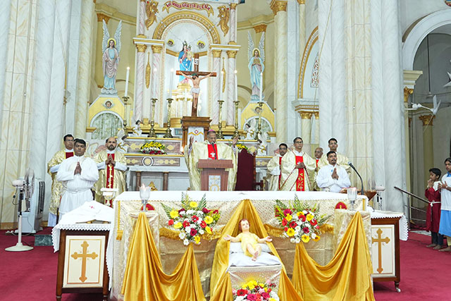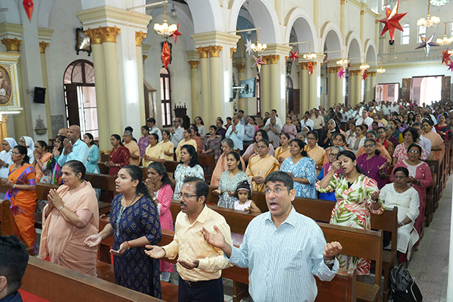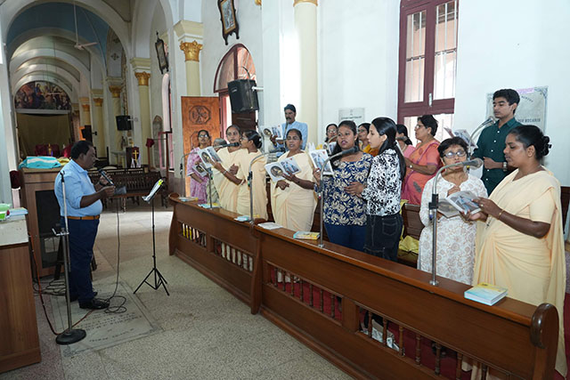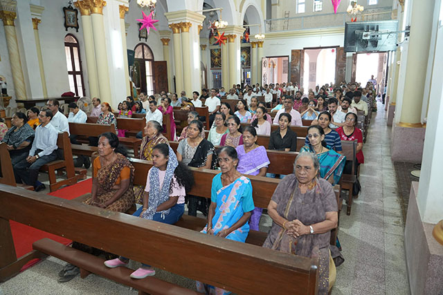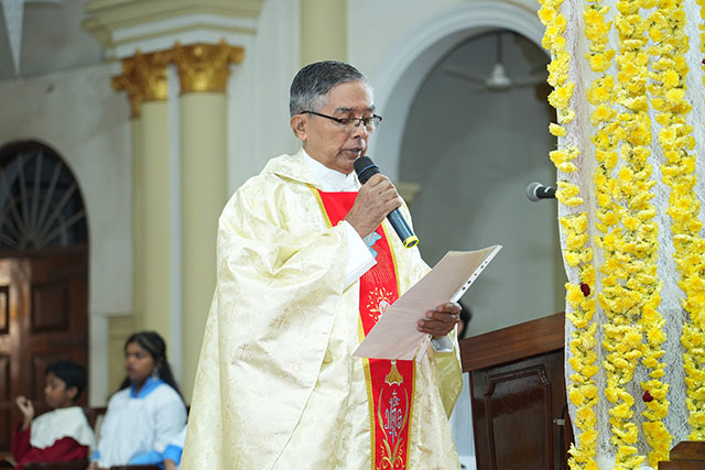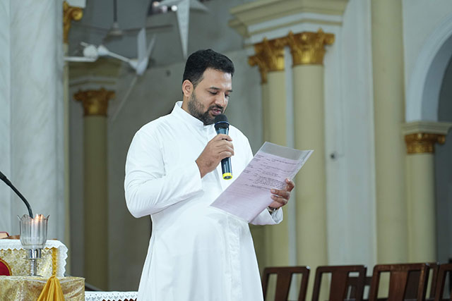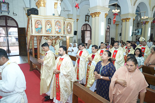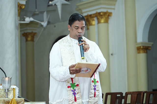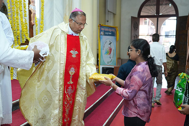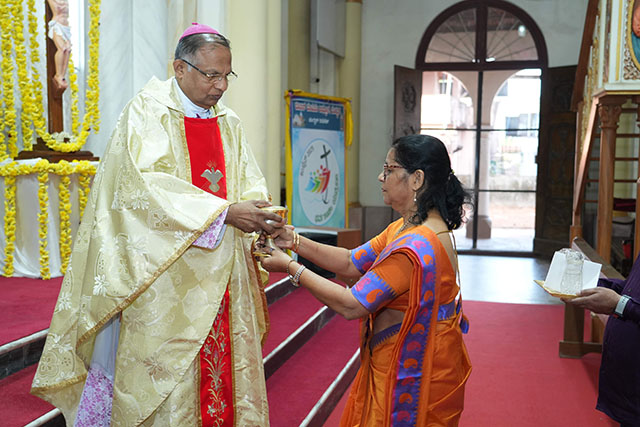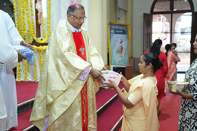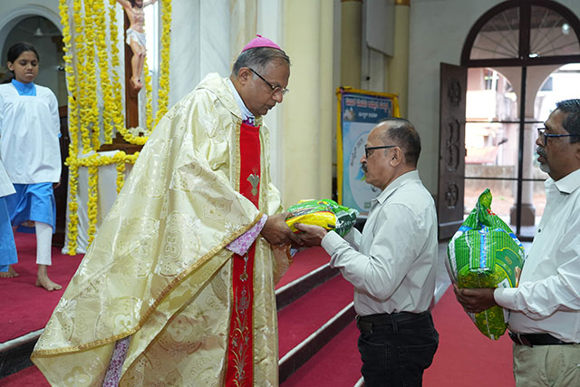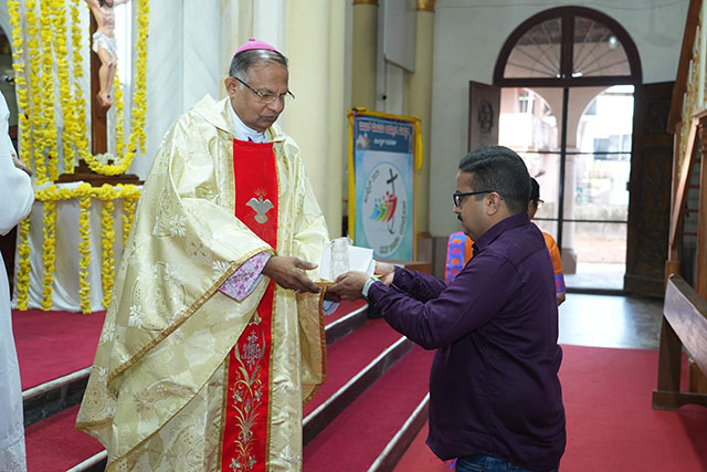 Dr Peter Paul Saldanha, bishop of Mangalore, presided over the stational Mass. He was joined by concelebrants vicar general Maxim L Noronha, episcopal vicar for religious Fr Daniel Veigas OP, judicial vicar and coordinator of pastoral commissions Fr Naveen Pinto, parish priest of Rosario Cathedral Fr Valerian D'Souza, director of pastoral centre Fr Santhosh Rodrigues, vicar forane of Pezar Fr Rudolf Ravi D'Sa, director of CCC Fr Anil Ivan Fernandes, director of St Antony Ashram Fr J B Crasta, Fr Valerian Fernandes, and Fr Jason Lobo.