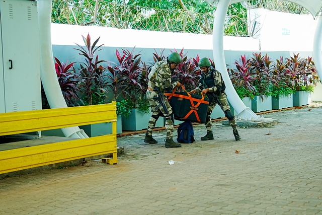 Airport authorities said the exercise was aimed at strengthening coordination among multiple agencies and reaffirming preparedness to respond to potential security threats involving a high-value public infrastructure such as an airport.