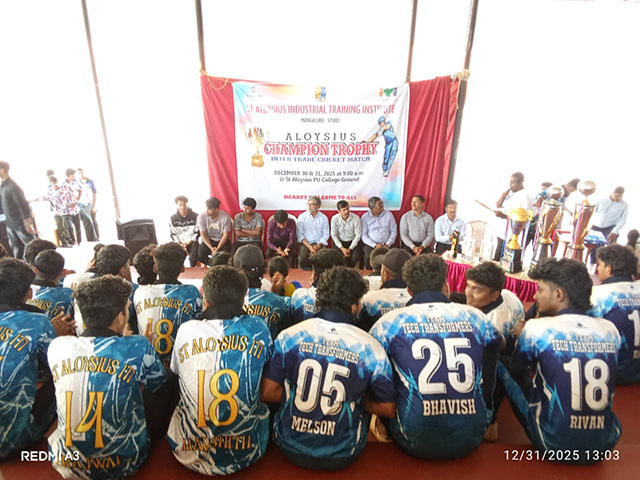 Mangaluru, Jan 1: The Aloysius Champion Trophy – Inter trade cricket match was successfully organized by St Aloysius Industrial Training Institute, Mangaluru, on December 30 and 31 at the St Aloysius PU College ground. The tournament was conducted with great enthusiasm, discipline, and sportsmanship among students of various trades.
