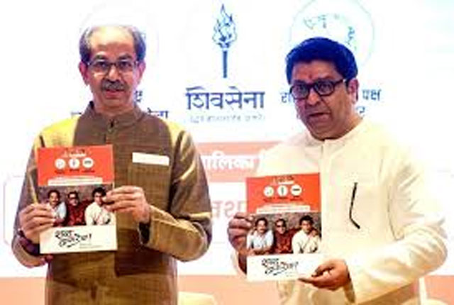 The manifesto was unveiled at a joint press conference at Shiv Sena Bhawan in Mumbai, a venue Raj Thackeray returned to after nearly two decades. The cover page features both Thackeray cousins alongside Shiv Sena founder Balasaheb Thackeray.