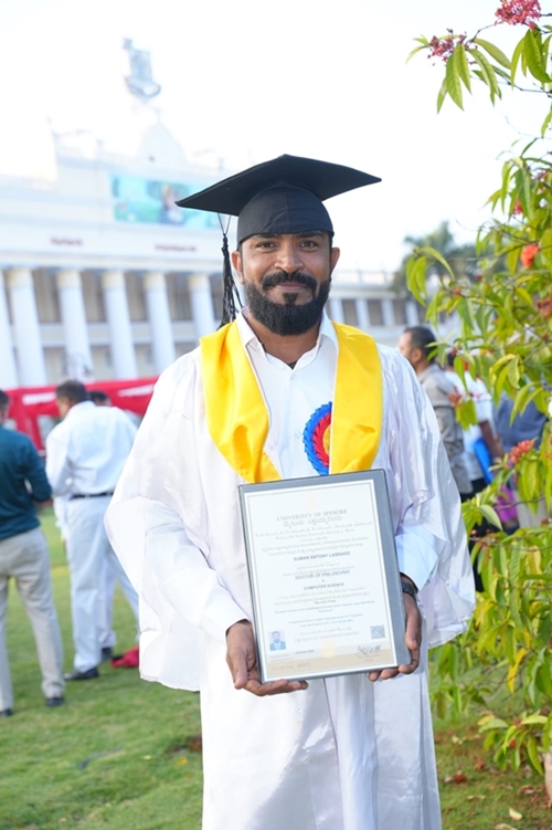 Mangaluru, Jan 6: Dr Suman Antony Lasrado, lecturer in Computer Science at Mount Carmel Central School, Mangaluru has been awarded the PhD doctorate in Computer Science by the University of Mysore for his doctoral thesis titled “An Early Prediction & Classification of Lung Cancer Disease Using Data Mining Techniques”. The doctoral degree was conferred during the convocation ceremony held at the university on January 5.