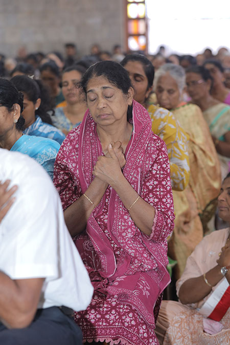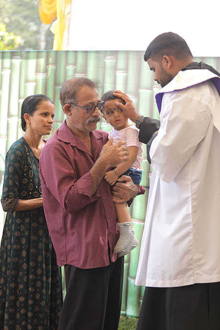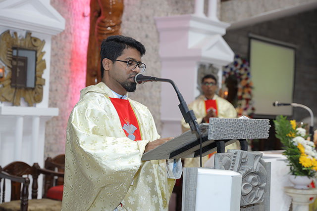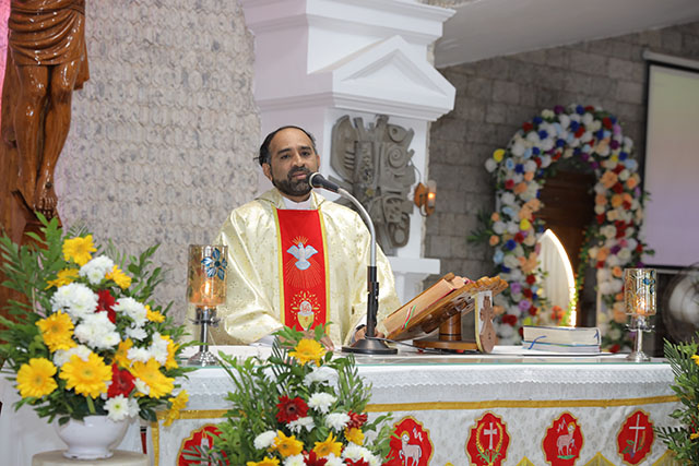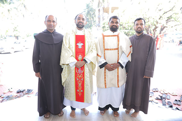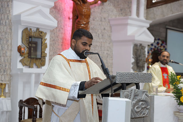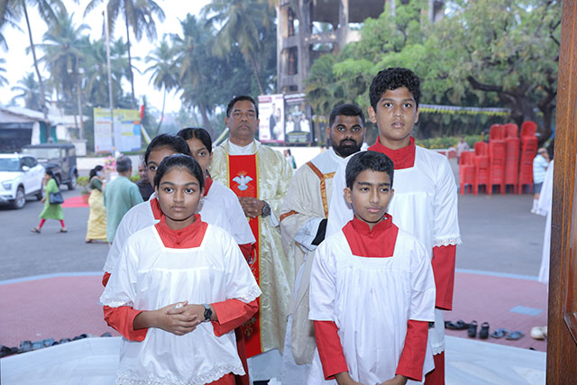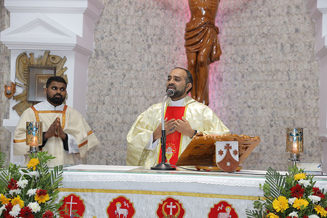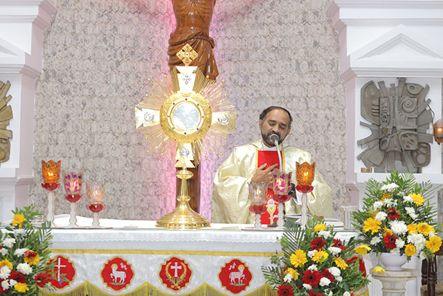 The first Mass at 6:00 am and the 1:00 pm Mass were celebrated by Fr Asheath D’Souza, director of Asha Deepa, Madanthyar. The second Mass at 7:30 am was presided over by Fr Kiran Lobo, OCD, from the Carmelite Monastery, Margao, Goa. The 9:00 am Mass was celebrated by Fr Walter D’Souza, parish priest of St Sebastian Church. The solemn 10:30 am Mass was celebrated by Fr Cyril Lobo from Divya Dham Seminary, Moodubelle, who also led the faithful in Eucharistic Adoration.