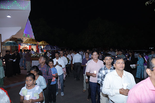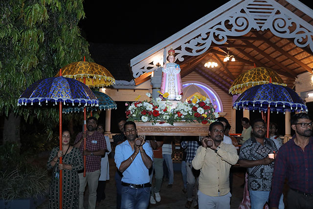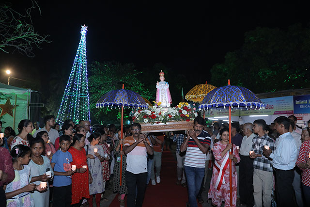 The day concluded with a solemn Rosary procession after the Mass. Devotees, carrying lighted candles, processed within the shrine while meditating on the mysteries of the childhood of the Infant Jesus. The statue of the Infant Jesus was carried in procession, adding to the prayerful and reverent atmosphere.
