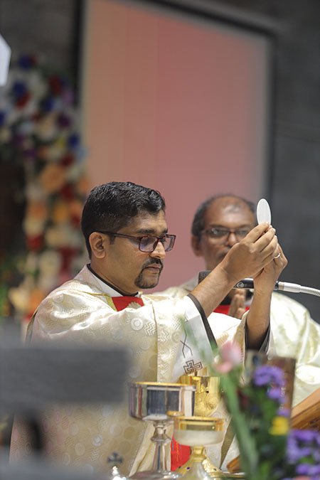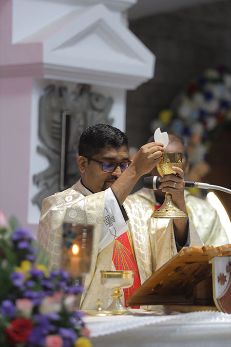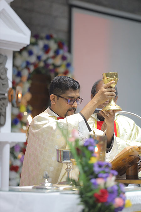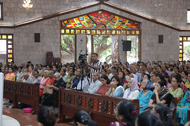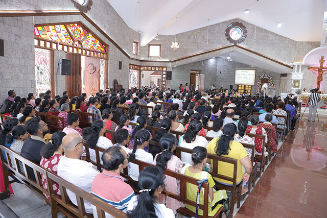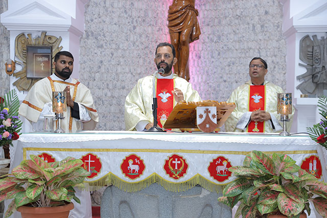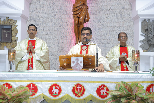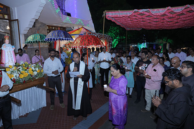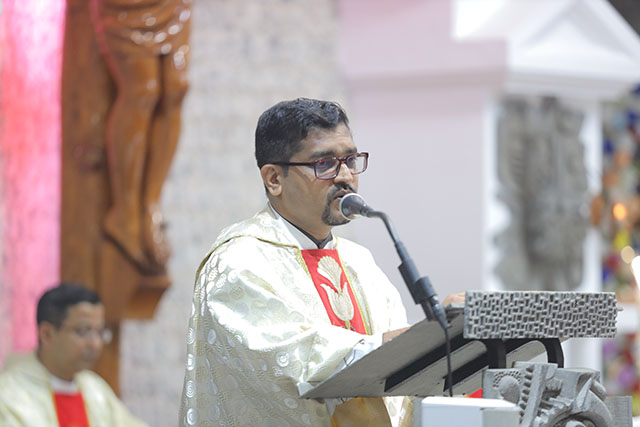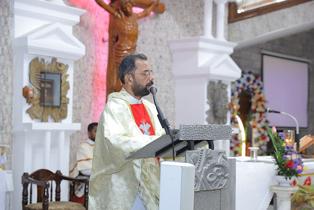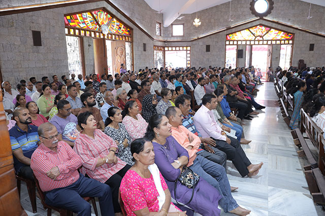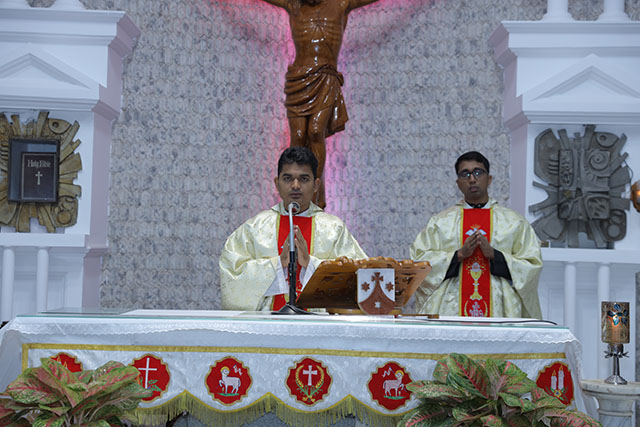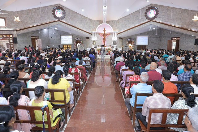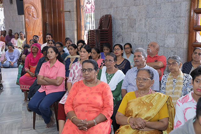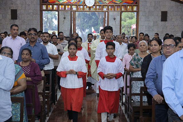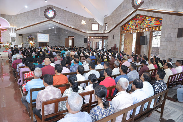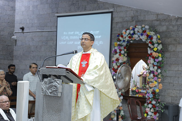 In the evening, the 5:00 pm English Mass was celebrated by Fr Melwyn Pinto, rector of St Aloysius College. The 6:00 pm Mass was celebrated by Fr Jocy Siddkatte, former editor of Naman Ballok Jesu, a Konkani socio-religious magazine. The final Mass of the day in Kannada at 7:45 pm was celebrated by Fr Prasanna Kumar, OCD, parish priest of St Michael’s Church, Belur.