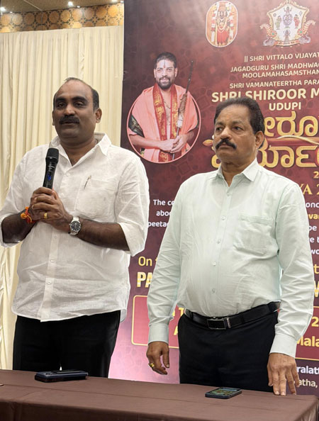 Mahesh R Shetty Tellar, Praveen Bhoja Shetty, Ermal Harish Shetty, Dr M Narendra and CA Surendra K Shetty also spoke on the occasion and wished that the Paryaya festival of Shiruru Vedavardhanatirtha be held in a historic manner. They appealed to everyone to contribute generously and participate in large numbers.