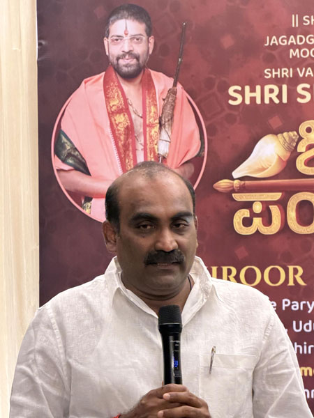 Paryaya welcome committee secretary Mattaru Ratnakar Hegde, in his introductory address, said that the festive spirit of the Paryaya Mahotsava will once again be witnessed at the abode of Shri Krishna in Udupi. Shiruru Shri Vedavardhanatirtha Shripada will ascend the Sarvajna Peetha for the first time and will be engaged in the worship of Shri Krishna for the next two years. He said that the service of all devotees is essential on this auspicious occasion.