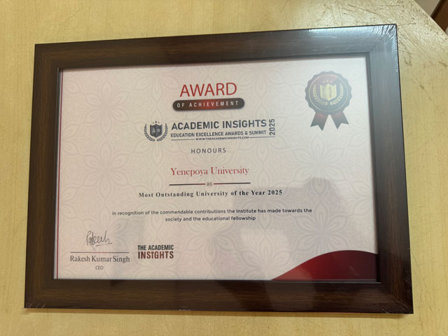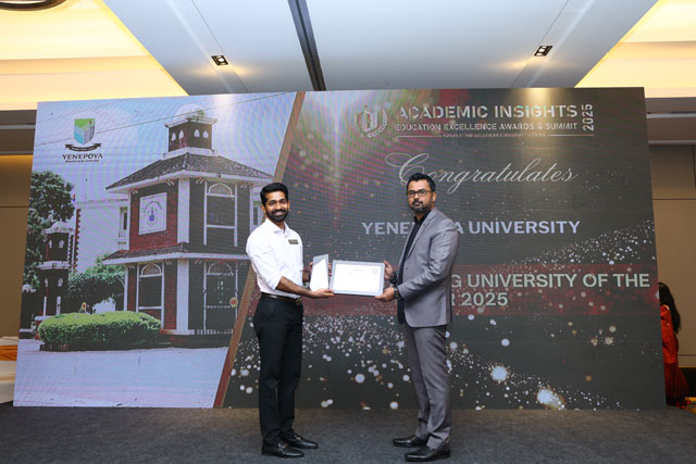 Mangaluru, Jan 14: Yenepoya (Deemed to be University) has been conferred the “Outstanding University of the Year 2025” title at the Academic Insights Education Excellence Awards & Summit 2025, Bangalore in recognition of its remarkable achievements and significant contributions to the field of education.